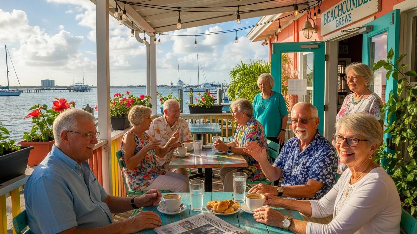 Retirees enjoying a sunny day at a waterfront park in Pinellas County, Florida